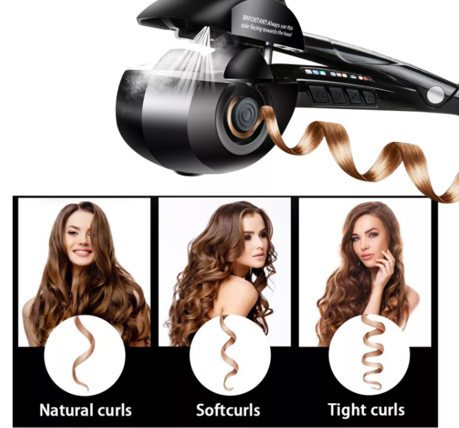 Эти приборы появились на рынке совсем недавно и произвели настоящий фурор в парикмахерском искусстве. Автоматическая плойка оборудована вращающимся стержнем, внутри которого имеется нагревательный элемент. Принцип работы довольно простой. Достаточно захватить прядь, выбрать температурный режим и время воздействия и нажать кнопку на рукоятке – далее стайлер сам начнет работать, формируя потрясающие завитки. О готовности каждого локона оповестит звуковой сигнал. Пользователю придется лишь осторожно придерживать плойку. Самозакручивающая плойка полностью безопасна в использовании: покрытие рабочей поверхности здесь тефлоновое или керамическое. Тепло равномерно распределяется по волосам, а чтобы прическа получилась идеальной, можно выбрать оптимальную температуру.