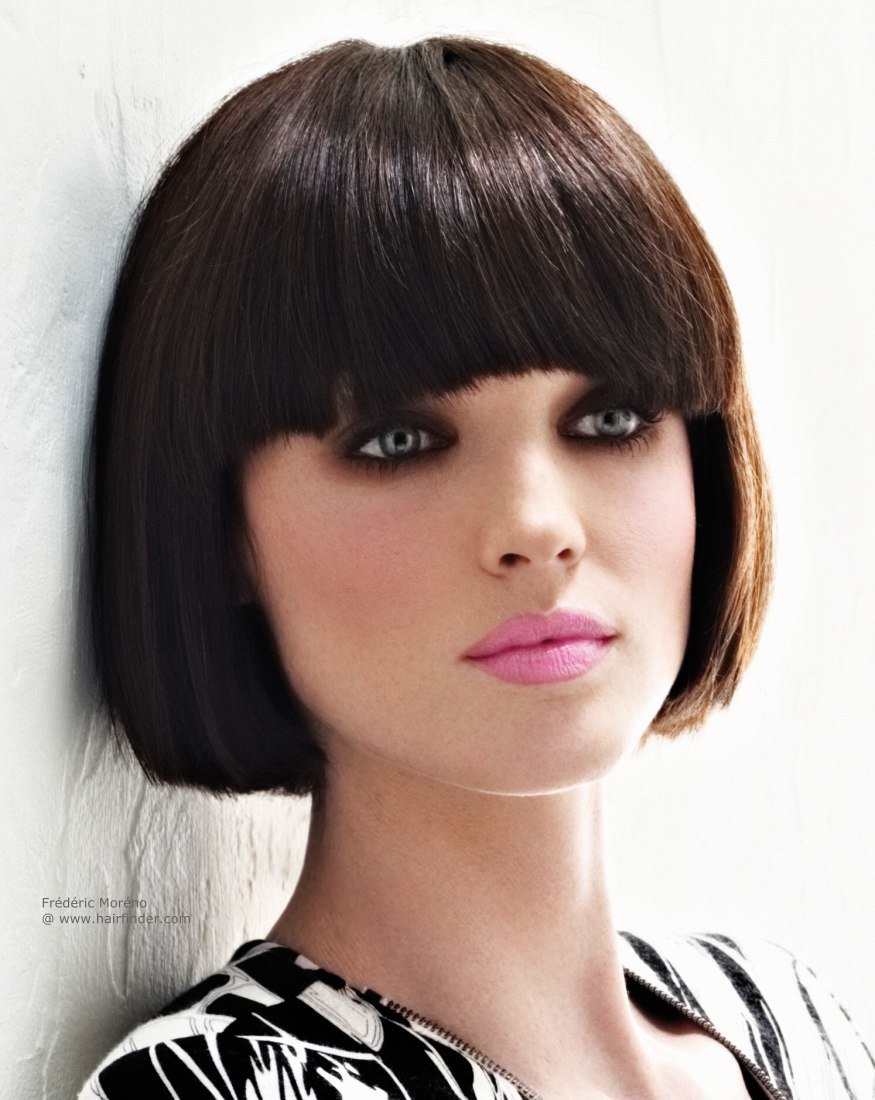 Прямая челка хорошо сочетается с классическим каре и бобом.