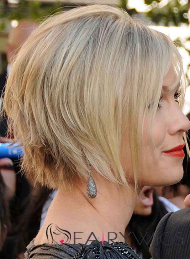 Этот вариант отличается изяществом и универсальностью – более длинные локоны спереди укорачиваются к затылку. Такая прическа уместна в любой обстановке и не требует особого ухода. При наличии кудряшек следует отказаться от этого способа – он хорошо смотрится только с выпрямленными волосами. Помогает скрыть следующие недостатки: