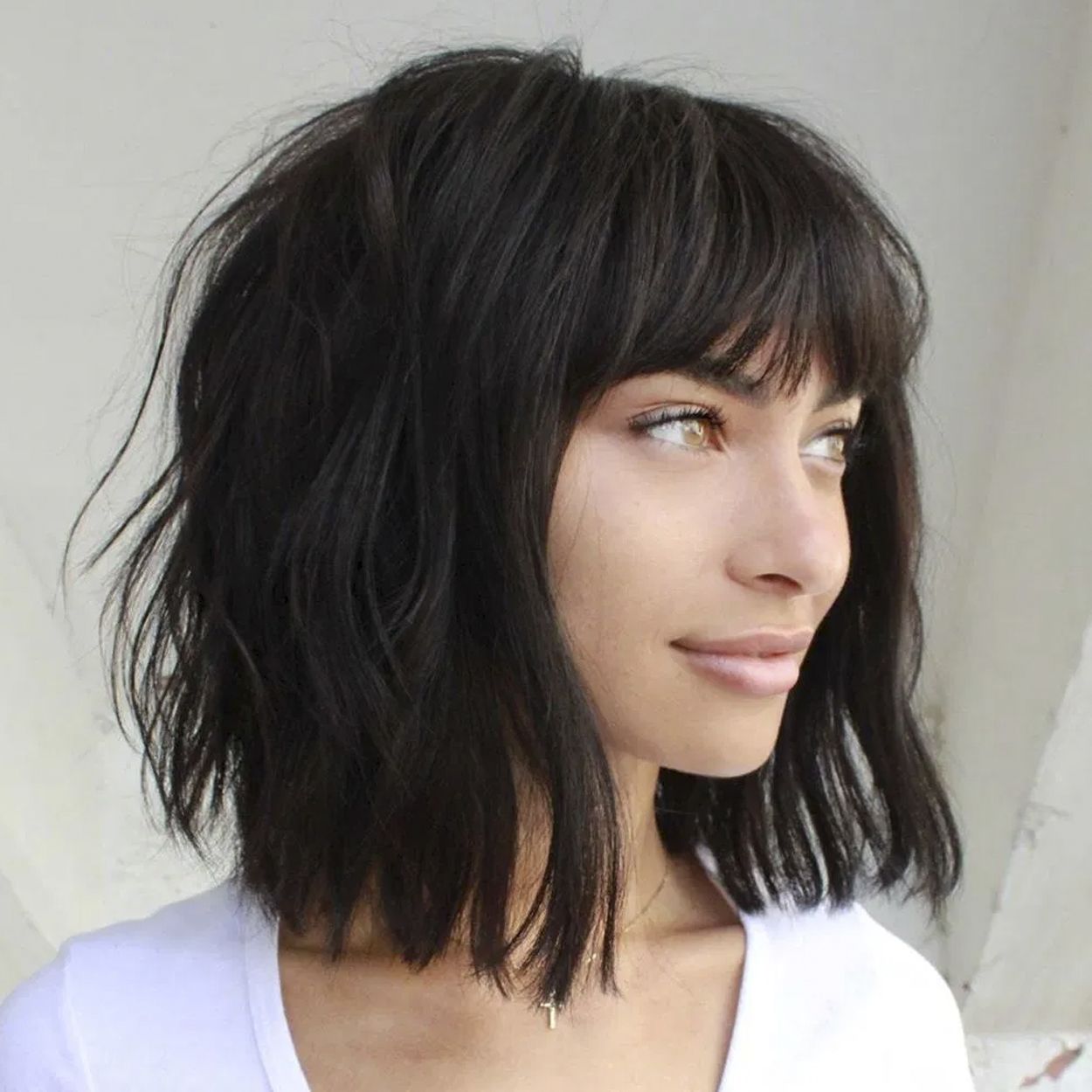 Как говорят парикмахеры, рваное каре на прядях средней длины выигрывает за счет длинной челки с плавным переходом в концы прядей.