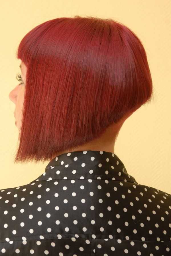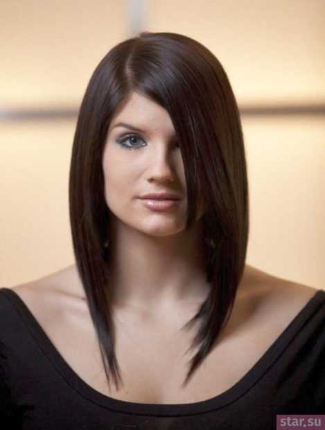 Такая прическа создается состриганием прядей под углом, чтоб сзади был затылок короче, а передние пряди были длиннее. Выглядит такая прическа очень элегантно и женственно, позволяя создавать загадочный образ.