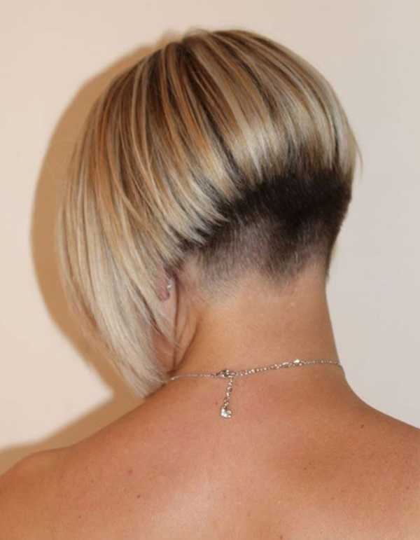 Вариация прически на ножке – это коротко выстриженный затылок с сохранением на остальном объеме шевелюры формы, присущей классическому фасону стрижки. Идеально подходит для обладательниц изящных, длинных шеек. А если эта часть тела далека от идеала или нежелательно привлекать к ней внимание, то от прически лучше отказаться. Для стрижки подходят волосы короткой и средней длины, в зависимости от которой, а также от типа лица, формируется длина боковых прядей. Но изюминкой неизменно считается оригинальная линия среза волос на затылке.