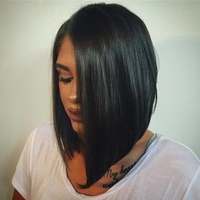 Асимметричное каре с челкой с удлинением на одну сторону.