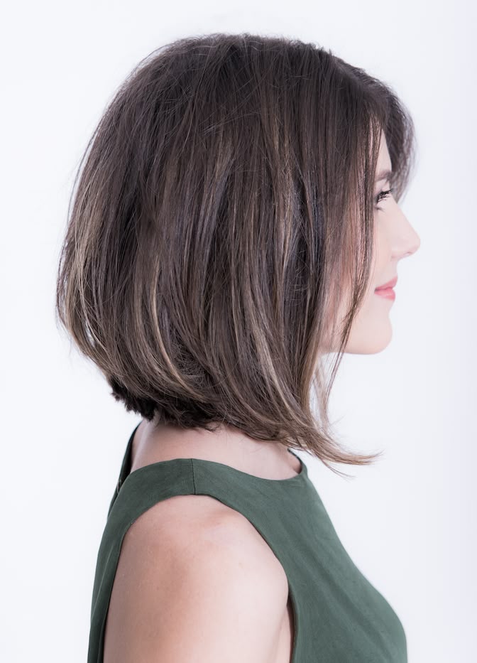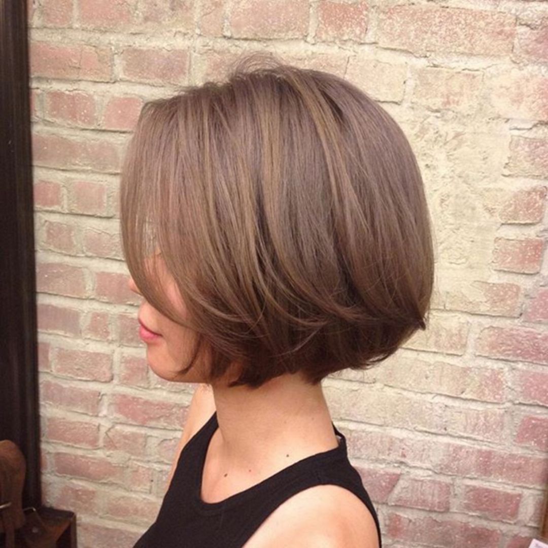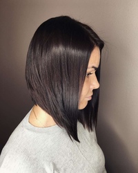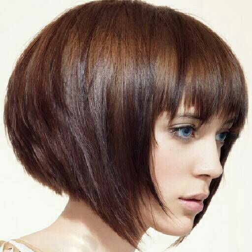 Если же вы обладаете тёмными волосами, то вам больше подойдет градуированное каре с косой челкой, но только если вы обладаете хорошей густой шевелюрой. Такая стрижка подойдет обладательницам овального и круглого типа лица со средней длиной волос, примерно до плеч.