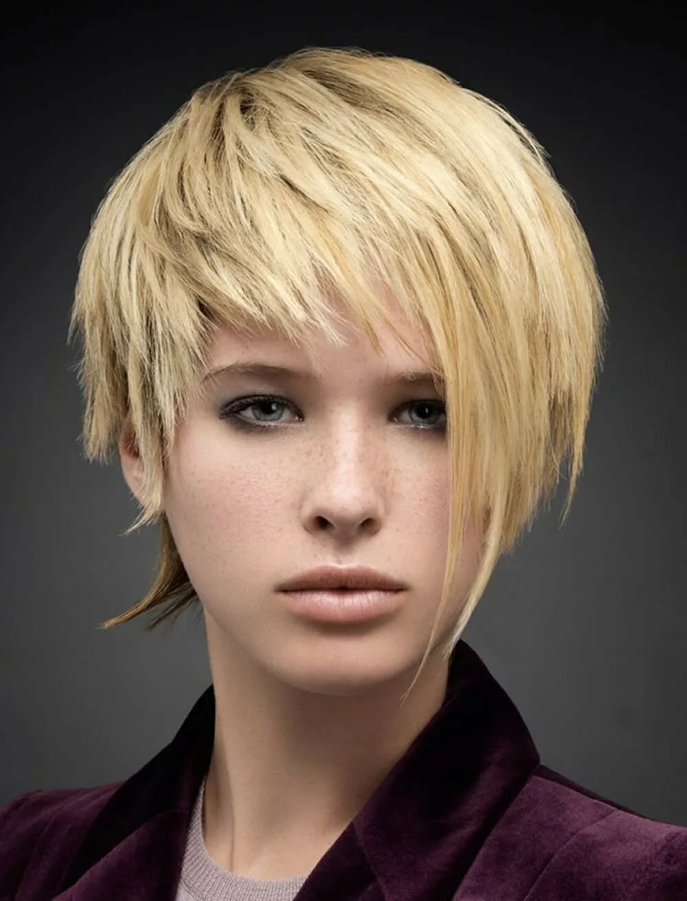 Если у вас достаточно короткая длина, то очень хорошо будет смотреться рваные концы. Укладка много времени и усилий не занимает, но, если вы желаете скрыть недостатки, например, треугольное лицо, большие скулы, можно сделать так, чтоб они исчезли.
