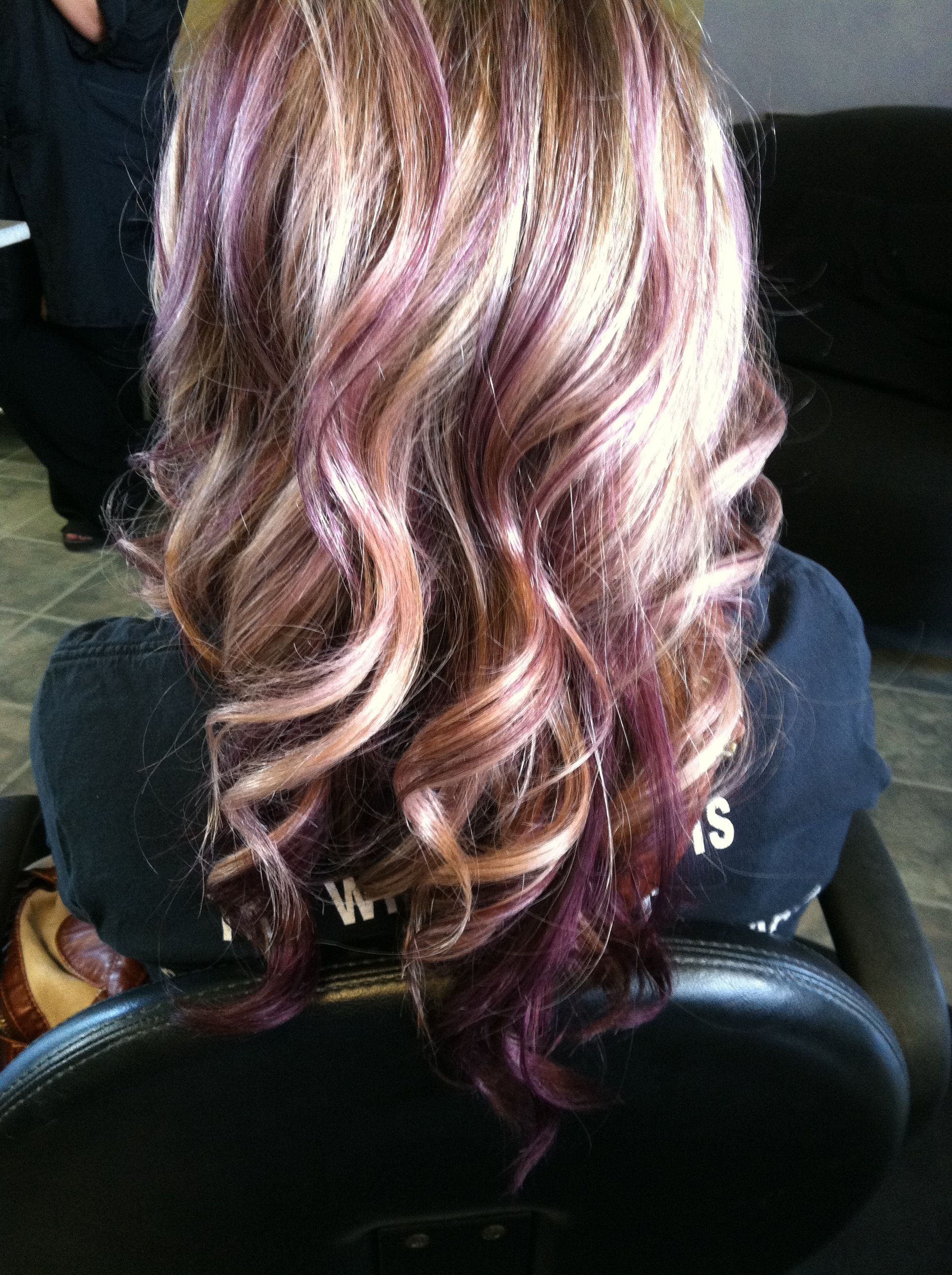 Фиолетовые переходы рекомендуются обладательницам холодного цветотипа, вишня и каштан – теплому. Более универсально среднее решение между красным и фиолетовым, очень свежо выглядит объединение какао и вишни.