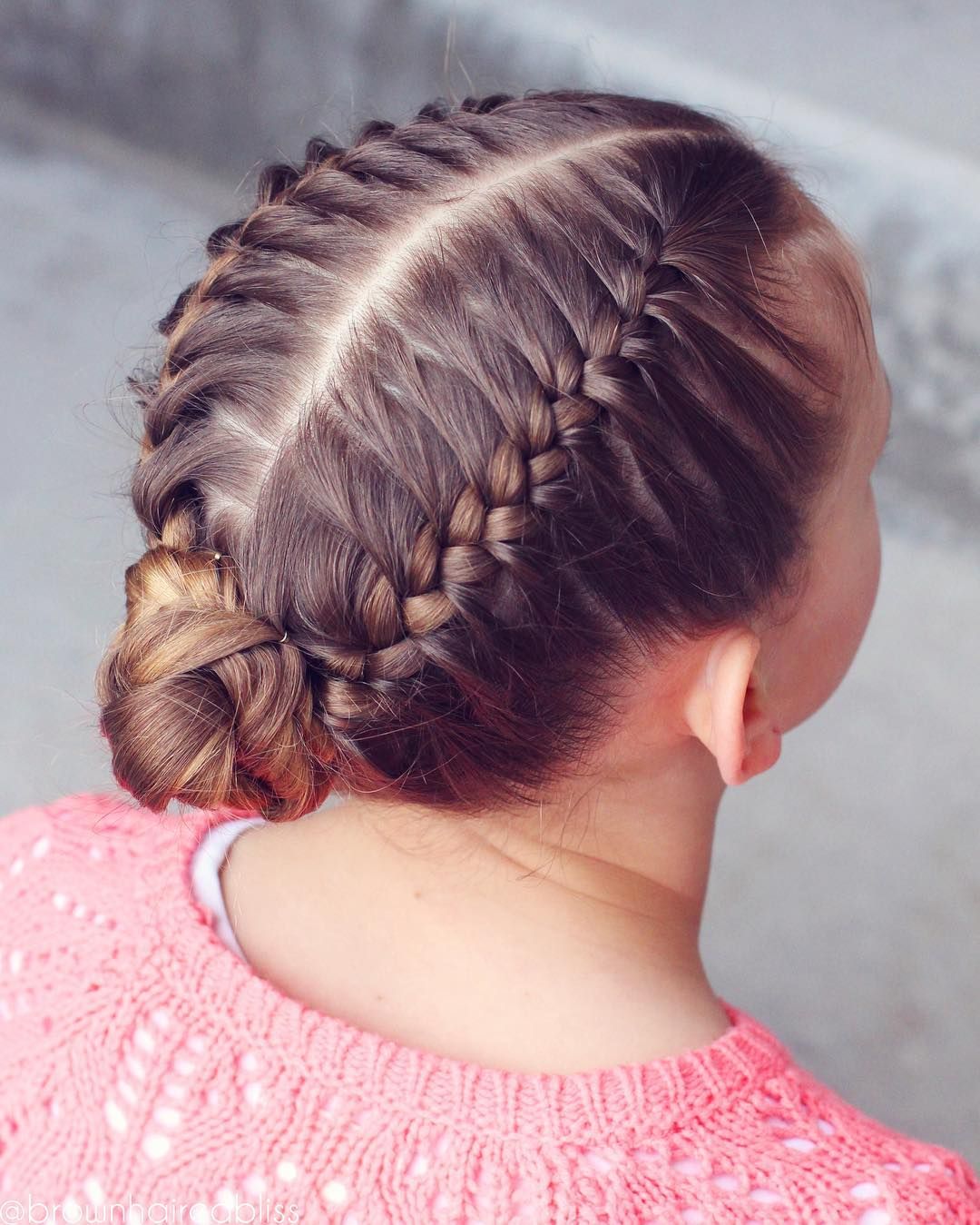 - Заплести несколько кос, обмотать их вокруг шишки и закрепить с помощью шпилек, невидимок.