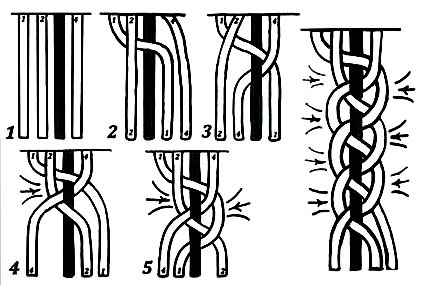 - Пронумеруем их таким образом: П №1, П №2, П №3, П №4 и П №5. После каждого действия над прядями нумерация снова сохраняется (пряди опять приобретают новую нумерацию: слева направо П №1, П №2, П №3, П №4 и П №5).