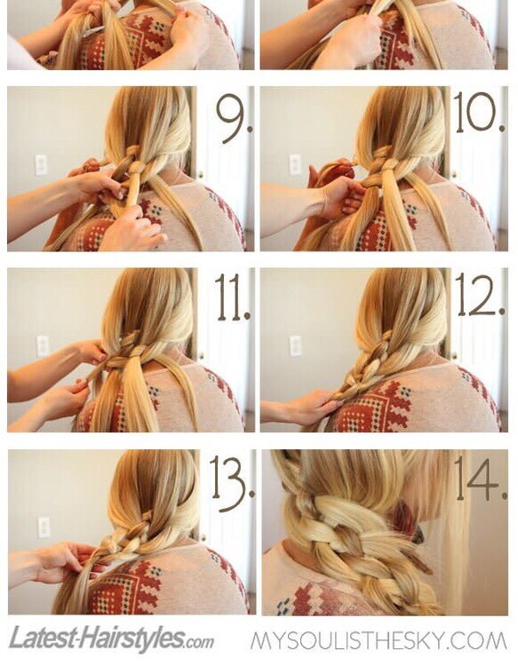 - Повторяйте эти шаги, пока все волосы не будут вовлечены в плетение.
