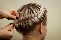 - Чтобы добавить прочности прически можно зафиксировать плетение при помощи лака.