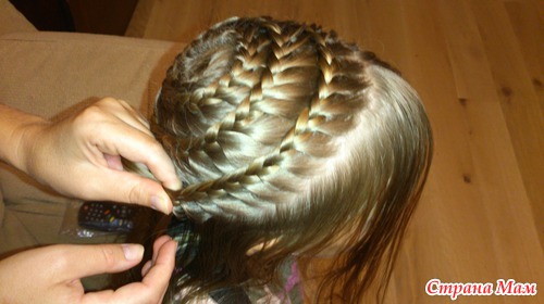 - ΠΠ»Π΅ΡΠ΅Π½ΠΈΠ΅ Π½Π°ΡΠΈΠ½Π°Π΅ΡΡΡ Π² ΠΎΠ΄Π½ΠΎΠΌ ΠΈΠ· Π½ΠΈΠΆΠ½ΠΈΡ ΠΎΡΠ΄Π΅Π»ΠΎΠ². ΠΠΎΠ»ΠΎΡΡ Π·Π°ΠΏΠ»Π΅ΡΠ°ΡΡΡΡ Π² ΠΎΠ±ΡΡΠ½ΡΠΉ ΠΊΠΎΠ»ΠΎΡΠΎΠΊ ΠΈΠ· ΡΡΠ΅Ρ ΠΏΡΡΠ΄Π΅ΠΉ. ΠΡΠΎΠ΄Π²ΠΈΠ³Π°ΡΡΡΡ Π² ΠΏΠ»Π΅ΡΠ΅Π½ΠΈΠΈ Π½ΡΠΆΠ½ΠΎ Π²Π²Π΅ΡΡ , Π΄ΠΎΠ±Π°Π²Π»ΡΡ ΡΠΎΠ½ΠΊΠΈΠ΅ ΠΏΡΡΠ΄ΠΈ ΠΎΠ΄ΠΈΠ½Π°ΠΊΠΎΠ²ΠΎΠ³ΠΎ ΡΠ°Π·ΠΌΠ΅ΡΠ°.