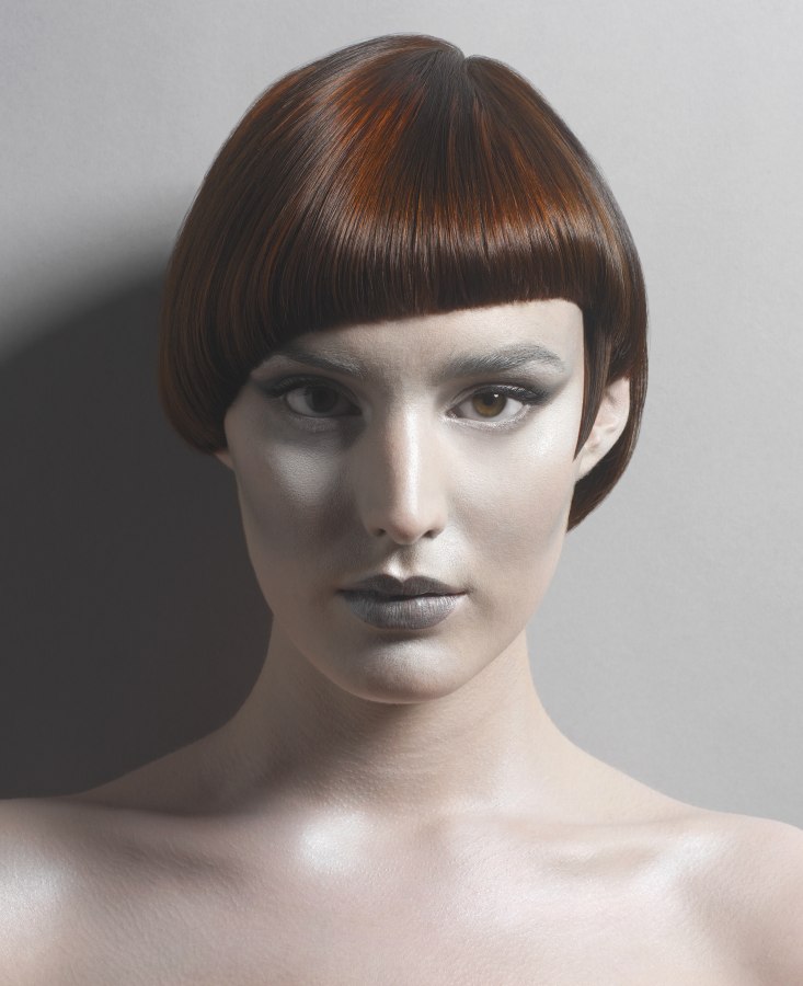 • Эта комбинированная стрижка имеет полукруглый контур на внутренней поверхности головы (одинаковые длины) и вытянутый контур на внешней поверхности (увеличение длин к линии периметра)