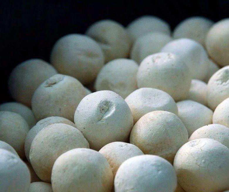 — Варёный и просушенный. Масса варится на протяжении двух-трёх часов, затем скатывается в виде шариков или цилиндриков, которые затем сушатся на солнце.