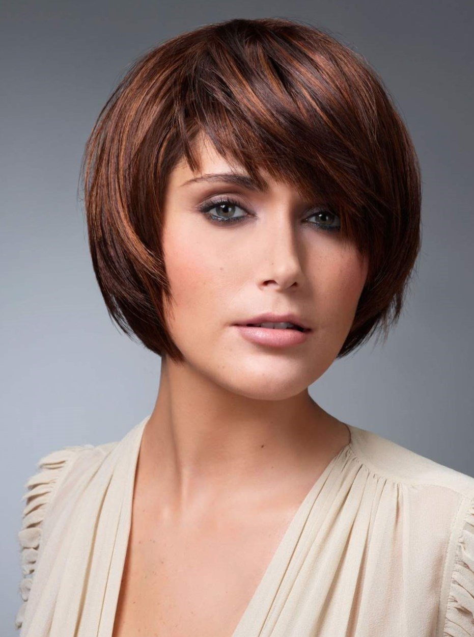 Идеально, если край многослойной челки будет на уровне скул. - Обладательницам треугольной формы лица мы рекомендуем остановить выбор на каре. Лучшим дополнением любой стрижки будет короткая челка набок.