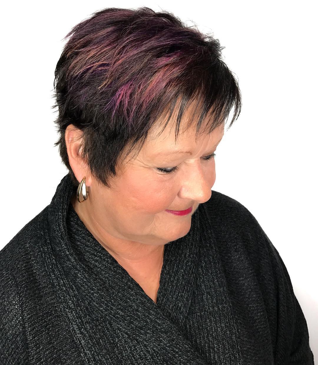 - пикси. Стильная, элегантная женская стрижка для пожилых дам с короткими волосами. Делает обладательницу моложе и сексуальнее, позволяет создавать укладки на каждый день, для офиса, праздничные. Пикси – идеальная прическа на круглое лицо.