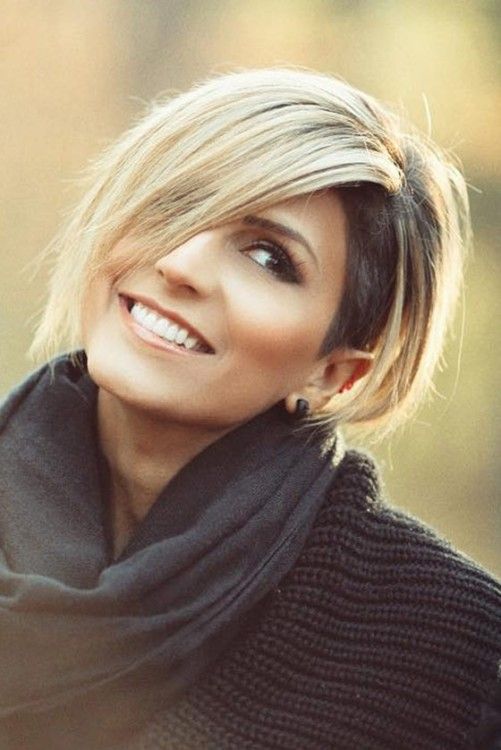 Короткая стрижка с длинной челкой via Короткие стрижки могут быть еще более женственными с боковой челкой.