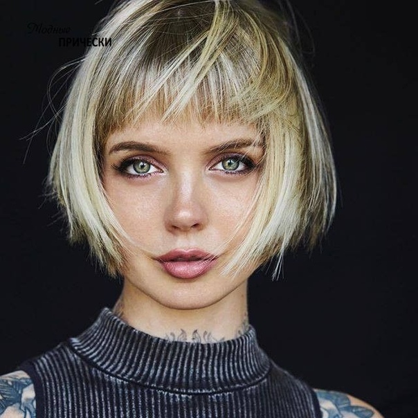 Крайне универсальная стрижка. Можно использовать текстурный спрей и подкрутить пару прядок, тогда образ получится милым и воздушным, а можно выпрямить волосы, так вы будете выглядеть ярко и дерзко. В предстоящем году в тренде укороченный боб с такой же челкой, которая идеально вписывается в общую картину.