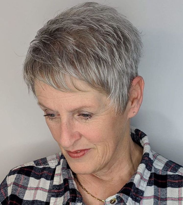 Украсьте всех этой элегантной и шикарной стрижкой! Несмотря на то, что эта стрижка пикси довольно короткая, она все же придает стильный блеск. Не бойтесь попробовать что-то более дикое и смелое в старости! Еще одна вещь, о которой не стоит беспокоиться, это оставить ваши волосы седыми! Серебряные волосы придадут вам зрелую элегантность.