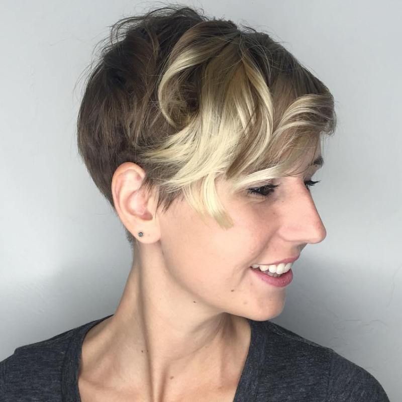 33. Выделенная Пикси. Солнечные летние цвета актуальны круглый год. Добавьте немного блондинки в стрижку пикси с короткими сторонами.
