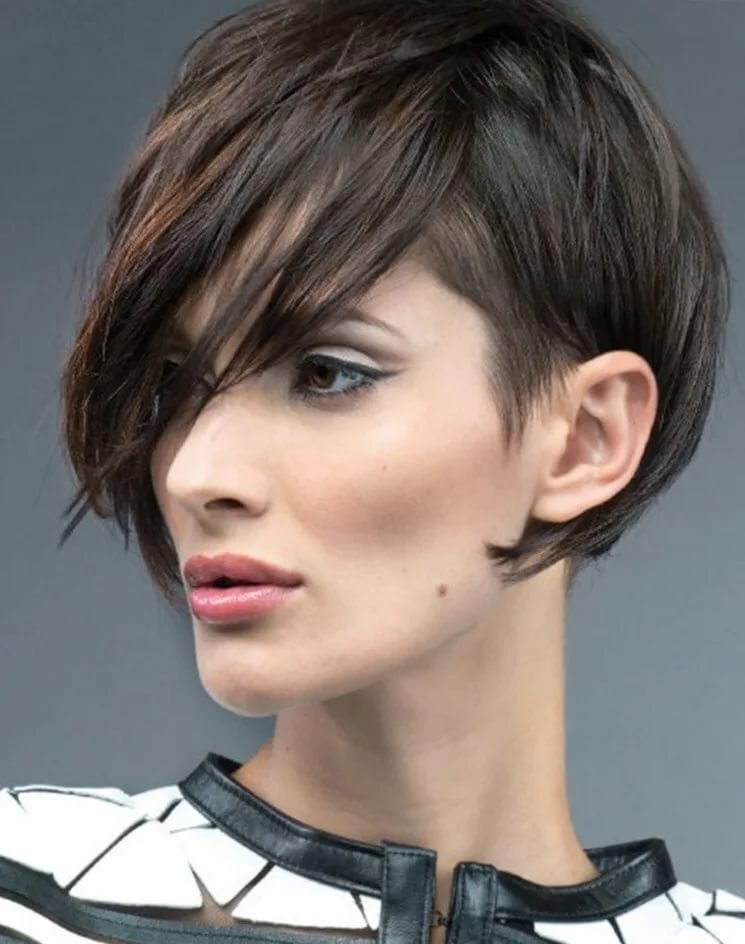 Некоторые считают, что короткая стрижка быстро надоедает, так как тяжело изменить образ, когда локоны лежат каждый день одинаково. Допустимо изменять образ челкой: