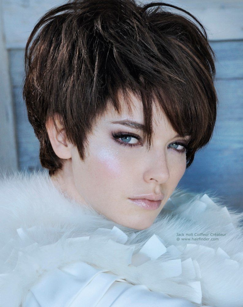 Одна из самых популярных стрижек на короткие волосы — это пикси. Пикси всегда имеет длинную челку, которую можно укладывать по-разному. Пикси подходит молодым девушкам и визуально помогает сбросить пару тройку лишних лет.