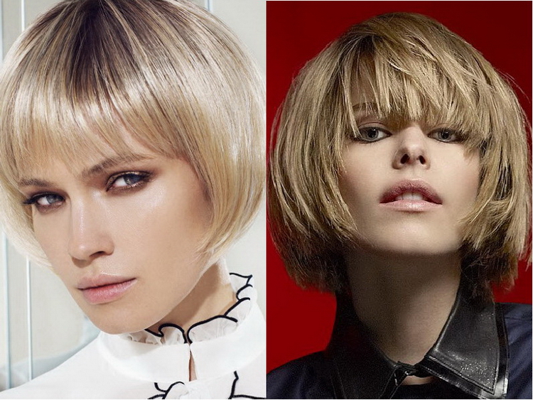 Геометричная стрижка «боб» смотрится достаточно стильно с прямой челкой на волосах, окрашенных в трендовые яркие тона «металлик». Боб овальной плавной формы требует тщательно постриженной челки, которая является продолжением линий прически. Волосы можно окрасить в один тон, сделать легкое мелирование или добавить ярких прядей. Боб с филированным краем будет смотреться стильно с очень короткой рваной челкой или длинной прядью, закрывающей лоб.