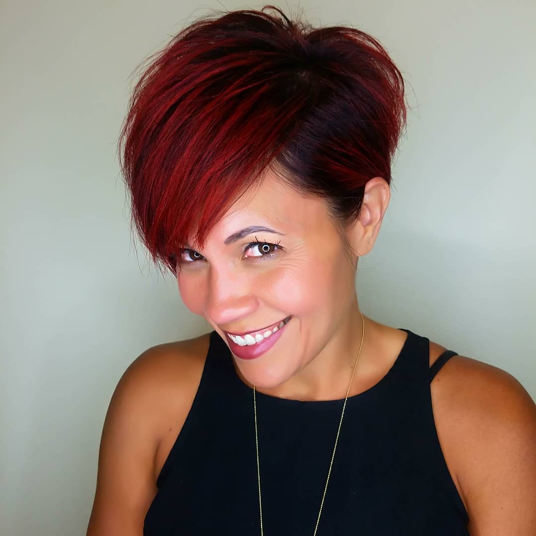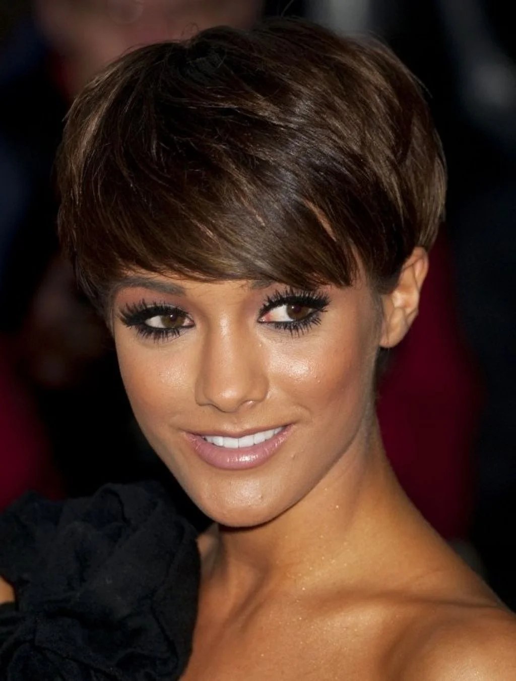 Несмотря на минимальную длину и визуальную небрежность, такая стрижка требует постоянного ухода и укладки. Подходит такая прическа хрупким девушкам с овальным лицом, красивой шеей и правильными чертами лица. Короткие стрижки с длинной челкой в этом случае позволят выглядеть женственно и элегантно, скрывая широкие скулы и лоб, привлекая внимание к глазам.