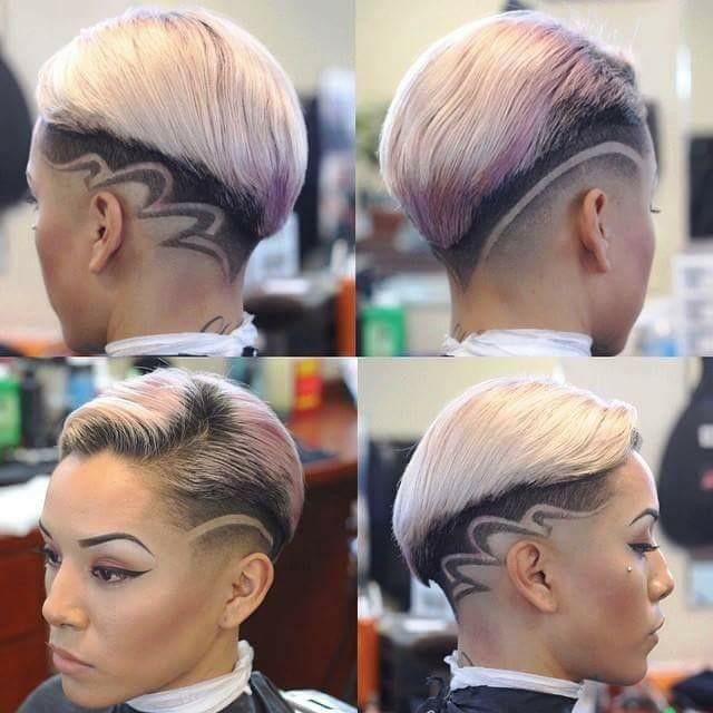 Прически с выбритым затылком и узором