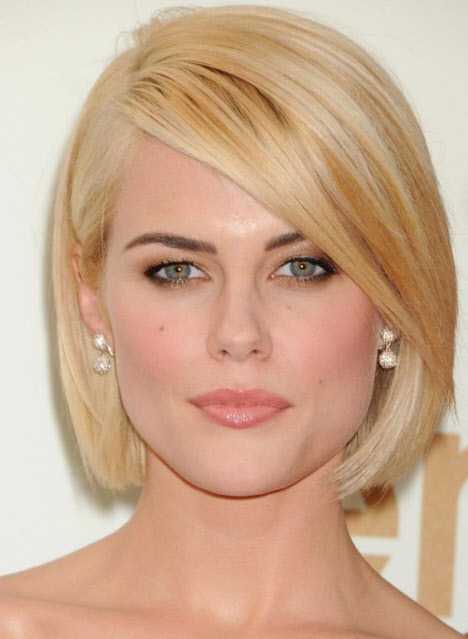 - Используйте многослойные короткие стрижки. Если волосы ещё и вьются, то их пышность сможет сбалансировать овал лица. Если же у вас прямые волосы, то вам отлично подойдёт причёска в стиле «Боб»