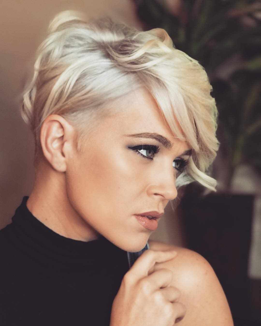 Модели с ультракороткими волосами не требуют укладки. Главное – соблюдать их чистоту. Взъерошенные прядки добавляют образу немного дерзости и взбалмошности.