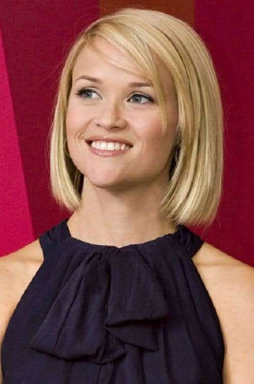 Стрижка может быть выполнена по всей ширине затылка, а может выстригаться углом. Боковые пряди опускаются до подбородка. Дополнительный акцент прическе придаст челка.