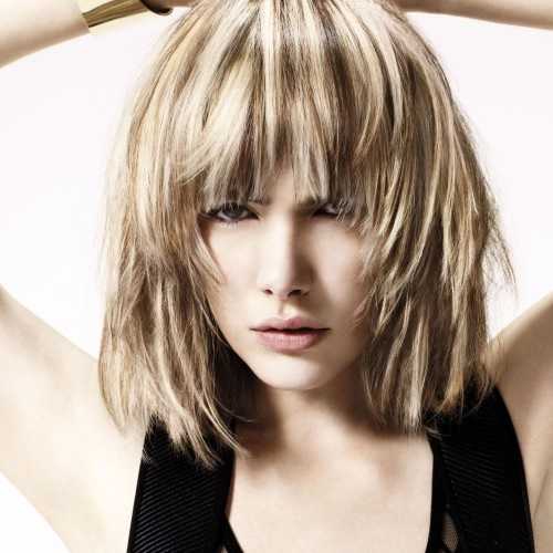 - Длинные рваные пряди. С помощью бритвы под очень острым углом пряди прореживаются, создавая рваный эффект.