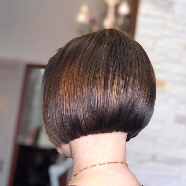 Когда дело доходит до угловатого боба, стрижка с закругленным затылком придает большую утонченность.
