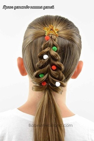 Сами елочки будем делать из волос с помощью: лент, резиночек, кос и хвостиков. Все пошаговые инструкции описаны вместе с фото и видео к каждой прическе. В статье вы встретите рекомендации по использованию заколок или других украшений для волос.