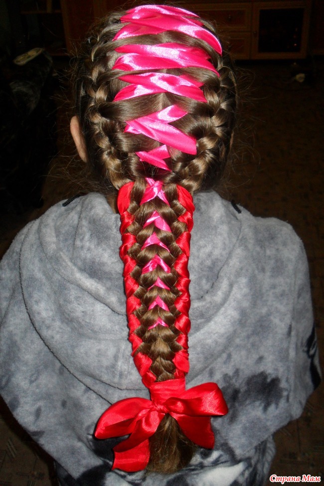 Но общее между советским прошлым и современным временем в отношении школьной причёски есть — она должна быть удобной, аккуратной не теряющей свой вид в течении всего дня и не отвлекающей девочку от учебного процесса. Под все эти параметры безусловно лучше всего подходят причёски из косичек — они долго сохраняются в первоначальном виде (даже если по расписанию физкультура), от них не устаёт голова так как от резиночек, крабов и ободков. И главное — они сейчас на пике популярности моды, а наши школьницы всегда хотят соответствовать ей. Косичек может быть от одной до нескольких штук, собирают их в хвост или затейливо укладывают, обыгрывают лентами, резинками или бантами. Вариантов плетения кос с лентами и без них множество.