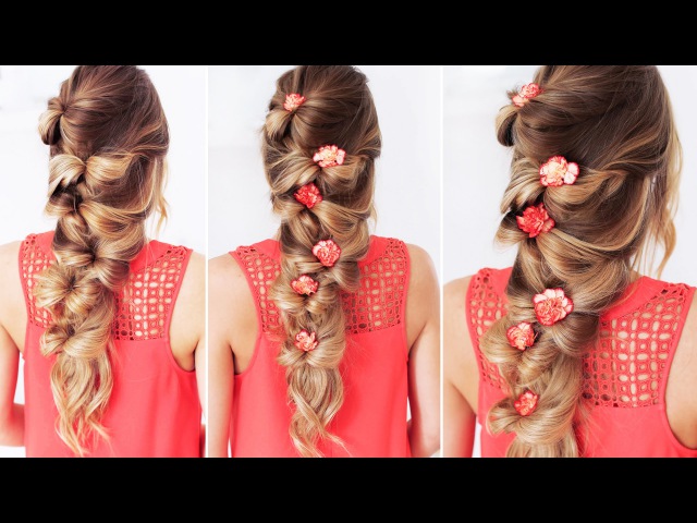 Уловка, чтобы эта прическа получилась хорошо, заключается в том, чтобы делать крошечные участки (микроплетение), когда вы создаете начальные косы. Если вы хотите использовать большие секции, вы всегда можете сделать 1 или 2 бантика для волос вместо 3!