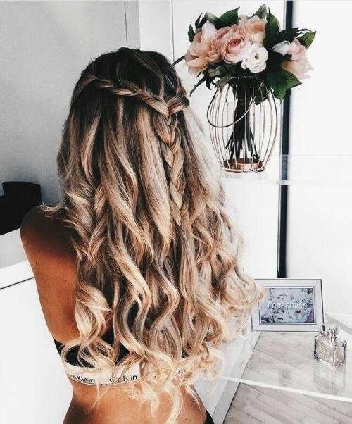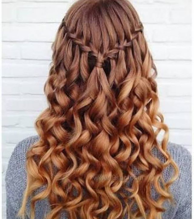 Водопадная коса с завитками для выпускного вечера Длинная волнистая прическа с потрясающей и простой косой-водопадом выглядит привлекательно и мило. Очаровательные водопады заплетают виды в длинную кудрявую прическу. Великолепная прическа отлично подходит для людей, которые ищут современную прическу, которую легко создать. Для длительного эффекта можно натереть немного помады для укладки средней фиксации между ладонями перед плетением.