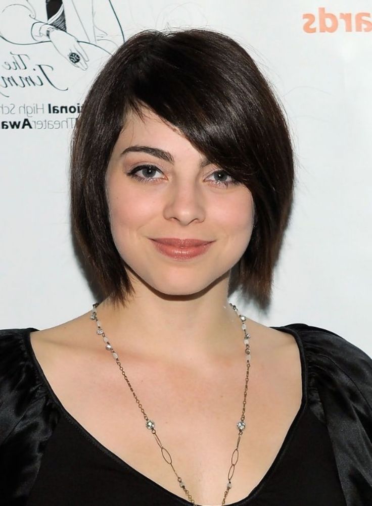 Короткие прически хорошо сочетаются с челкой по диагонали, которая закрывает только одну часть лба. Не менее подходящие варианты – асимметрия, «рваные» кончики, каскад или волнистая удлиненная челка.