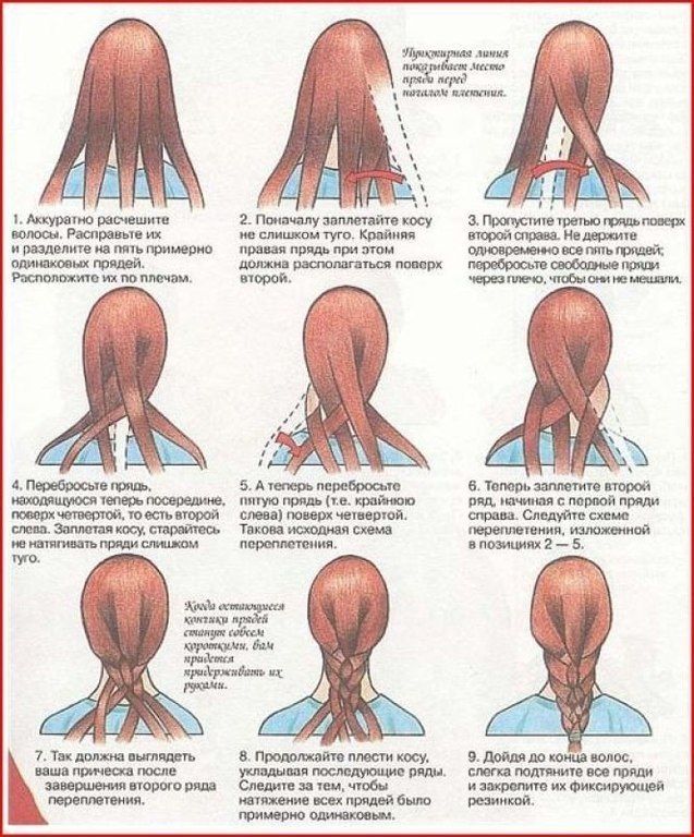 Коса из 5 прядей — схема плетения