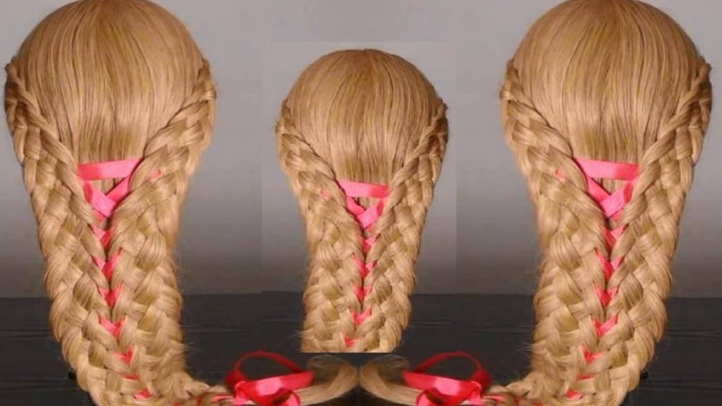 Косичка из 2 прядей – это не только классический «рыбий хвост», но еще жгут, водопад и даже вариант с лентами.