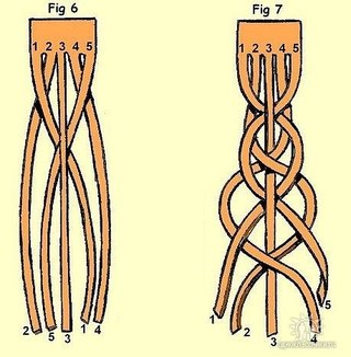 По такому же принципу плетут французскую косичку из 6 нитей (рис.
