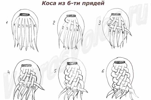 Коса из 6 прядей, пошаговая схема плетения своими руками