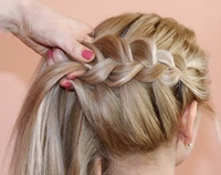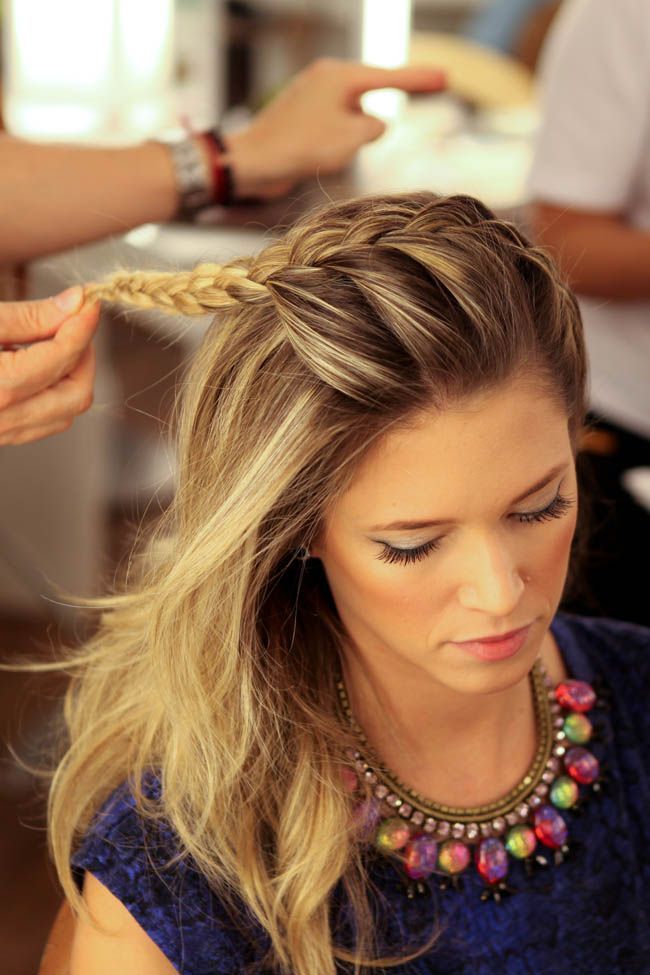 Шаг 4: Таким образом проплетите всю косу до правого уха. Косичка должна быть свободной, так как нам еще предстоит вытянуть боковые пряди.