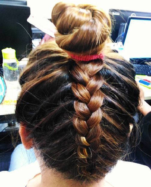 совмещающий в себе два элемента – косу и пучок на макушке.