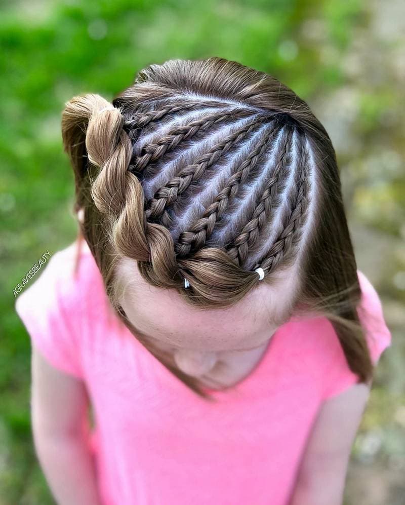 Эта прическа восхитительна и нравится детям. Просто уберите волосы от лица, сделайте небольшой начес и добавьте косы по бокам. Вы можете сделать волны, локоны или оставить волосы прямыми.