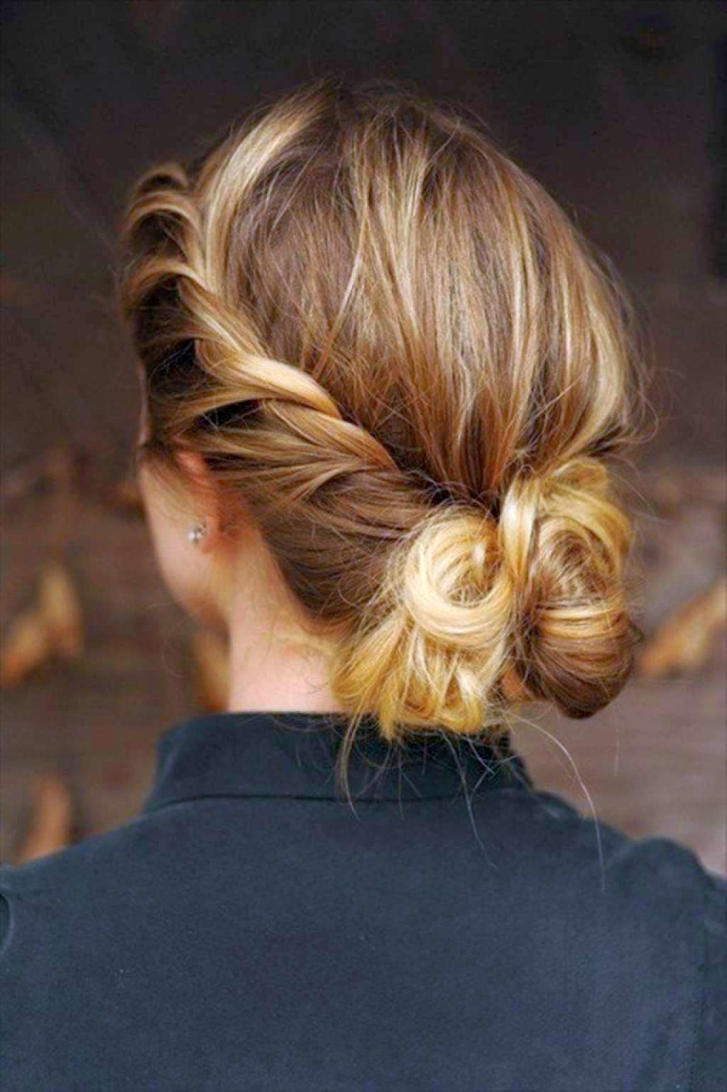 Этот стиль выглядит несложно из-за его изначально неаккуратного вида. Начните с двух косичек в виде рыбьего хвоста, а затем скрутите их в две маленькие пучки по обе стороны от головы. Приколите их и нанесите лак для волос. Посмотрите прямо здесь.