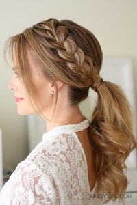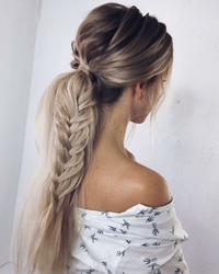 - Оставшиеся локоны необходимо заплести в косу или создать хвост.