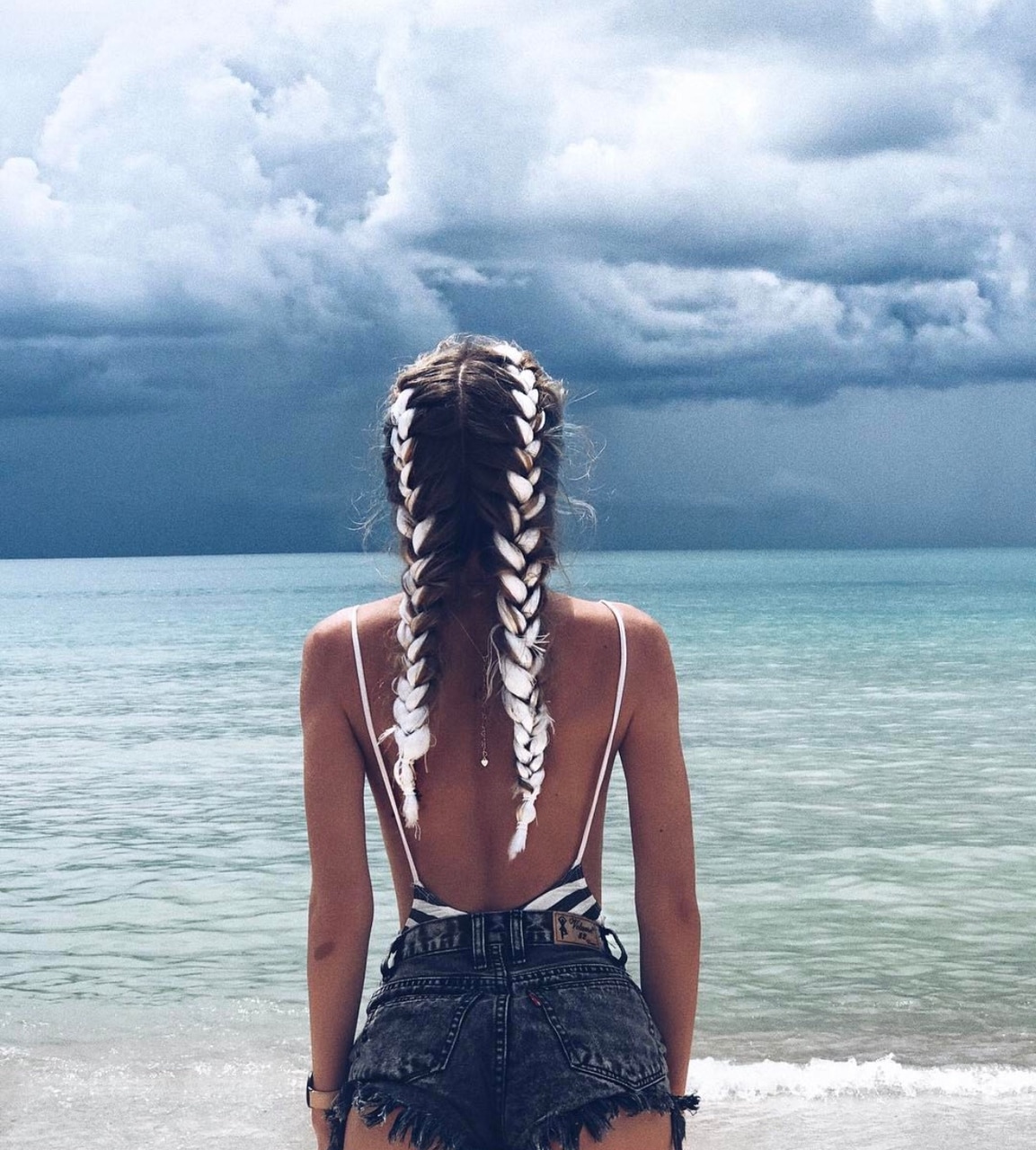 Начнем с основных моментов по уходу за прической на море. — Не забывайте защищать кожу головы кремом с УФ фильтрами или головным убором. Если ваши проборы обгорят, будет не приятно.— После купания в море обязательно освежите косы пресной водой, можно хорошенько промыть их в душе без шампуня.