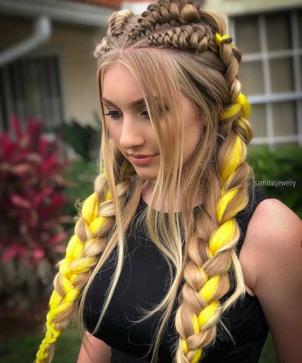 Пряди с заклепками? Подпишите нас. Мы пускаем слюни от этого искусно украшенного двойными голландскими косами. Кто знал, что косы с косичками могут быть настолько панк-роком?