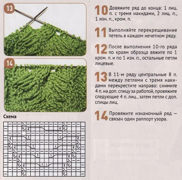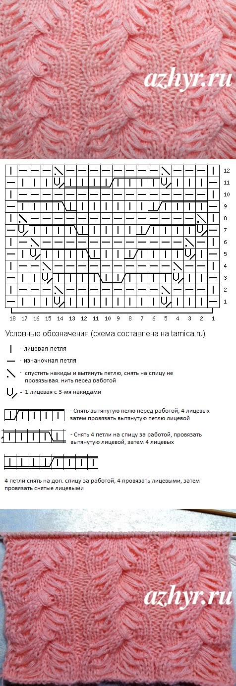 Для данного узора косы схема и описание тоже несложны — лр вяжутся по схеме, ир — по рис: